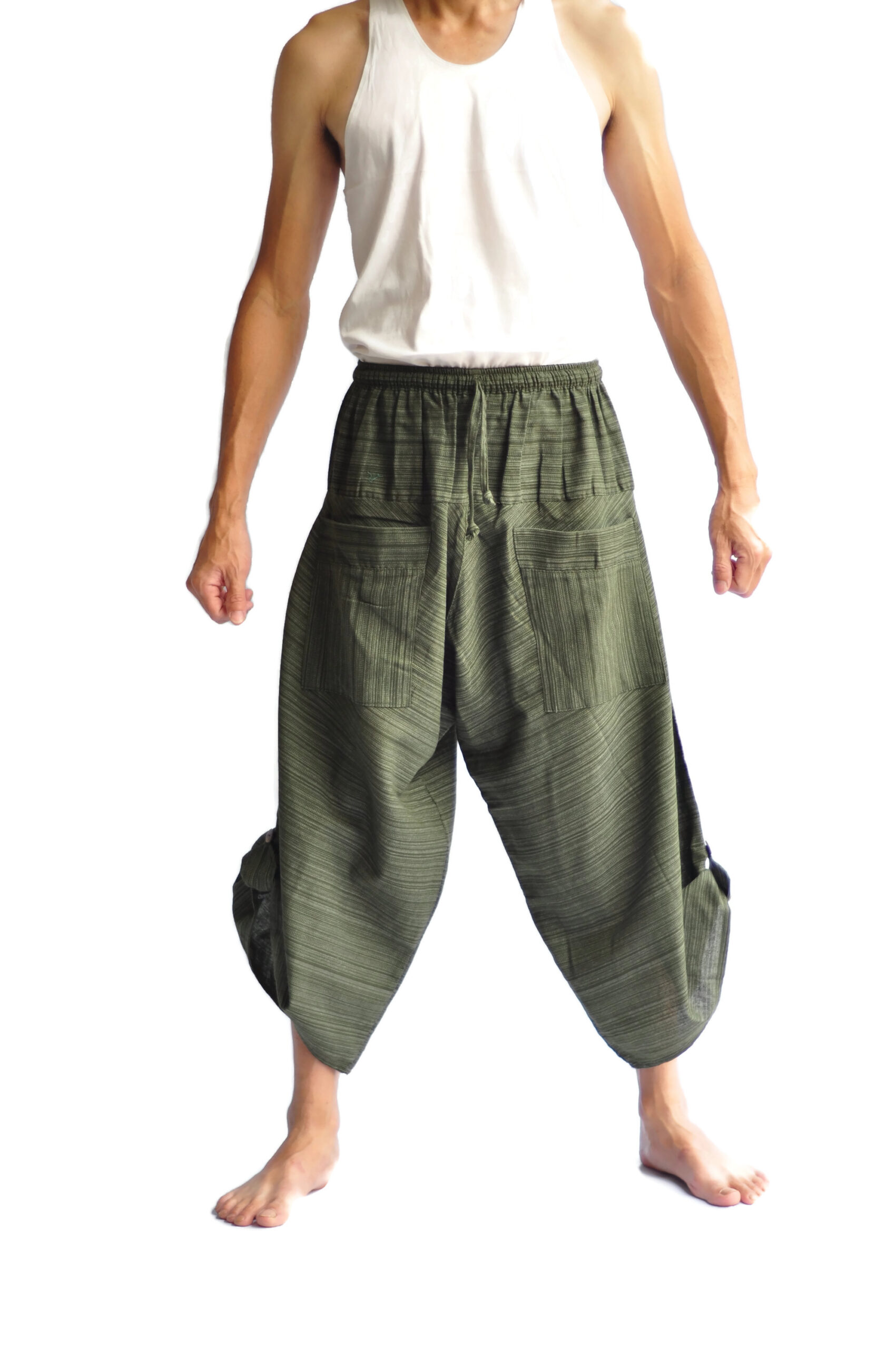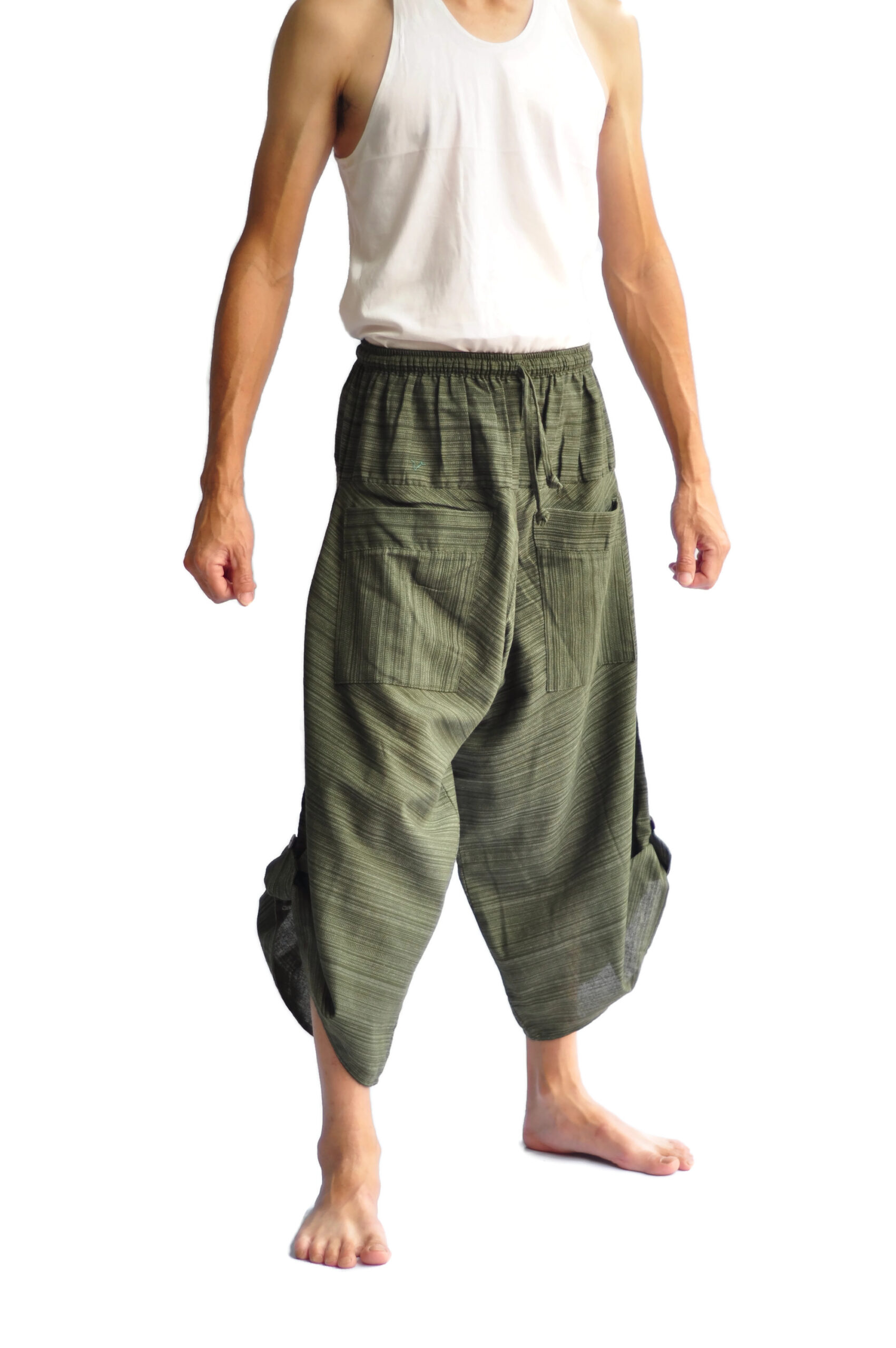 Men’s Japanese Haren pants Samurai pants Yoga beach pants Style Pants One Size Japanese Design Green pants men