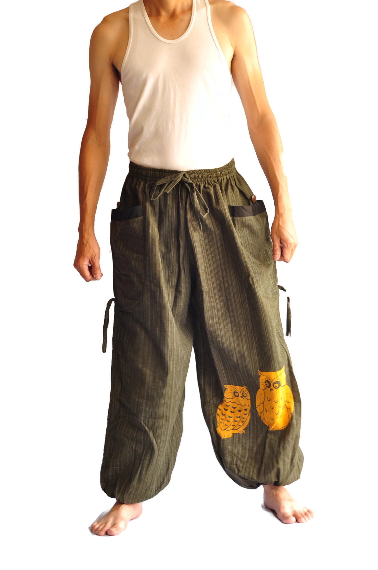 Handmade Cotton Aladdin Pants, Unisex Boho Harem Pants with Side Drawstring, Thai Artisan Clothing