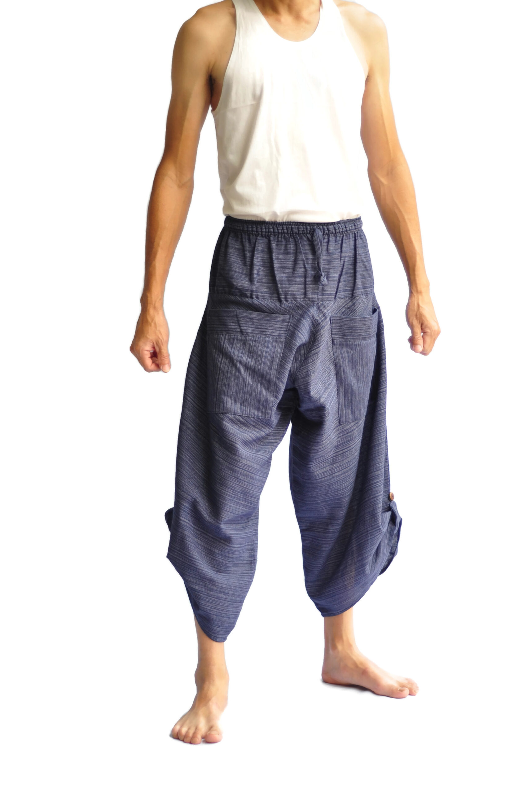 Handmade Cotton Aladdin Pants, Unisex Boho Harem Pants with Side Drawstring, Thai Artisan Clothing
