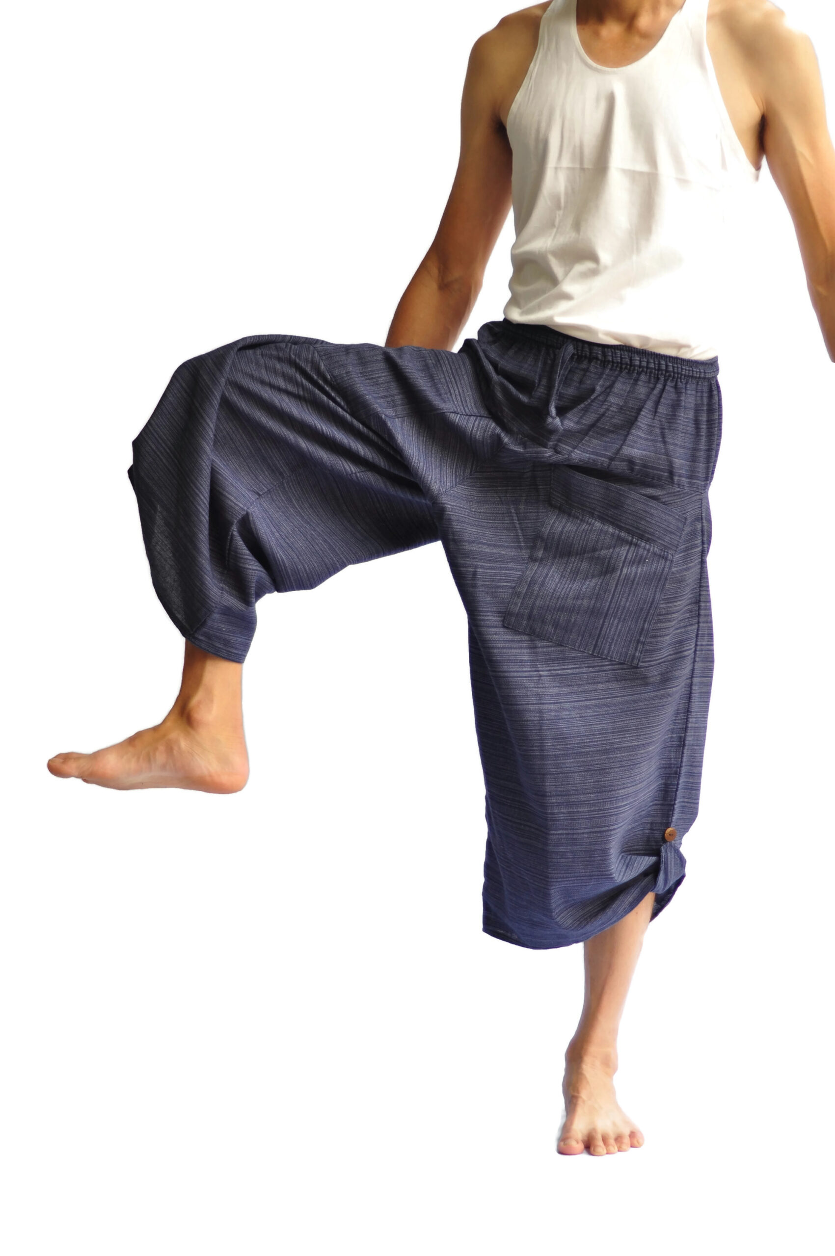 Men’s Japanese Haren pants Samurai pants Yoga beach pants Style Pants One Size Japanese Design Blue pants men