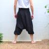 Super Black Short Baggy pants, Short pants, Trousers, Baggy pants, Yoga Pants, Handmade 100% Cotton(Unisex) One Size Fit All